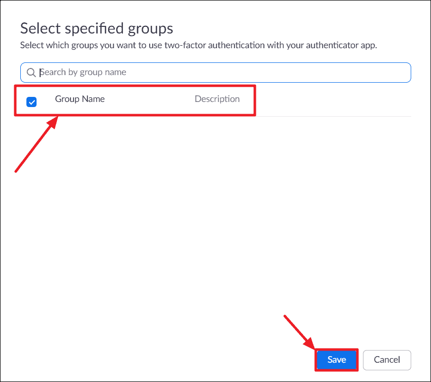 Users belonging to specific groups: This enables 2FA for users that are in the specified groups. Click the pencil icon, choose the groups, and click save.