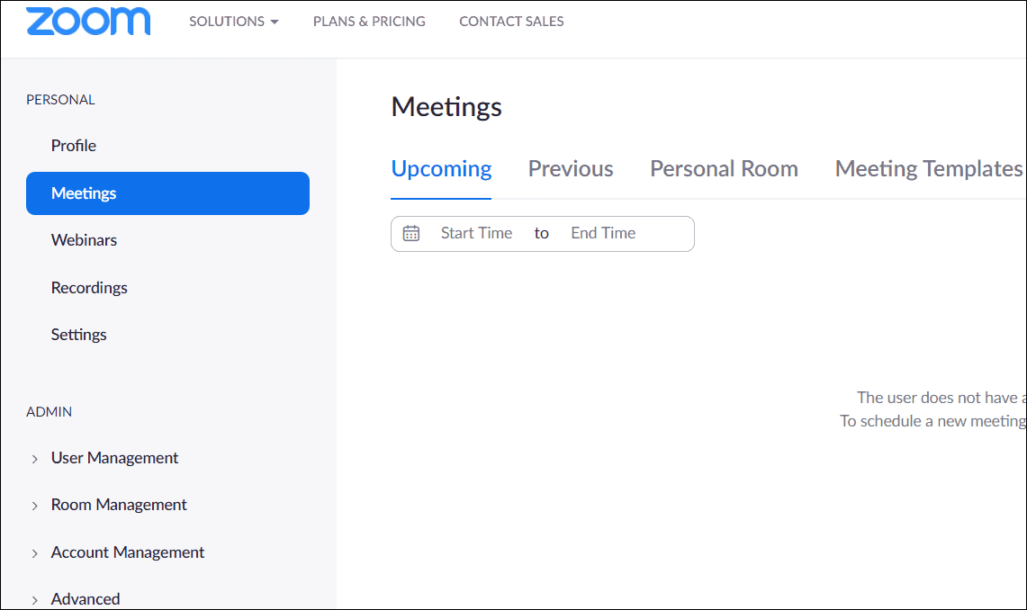 Once you have signed in, the default ‘Meetings’ page will appear on the screen.