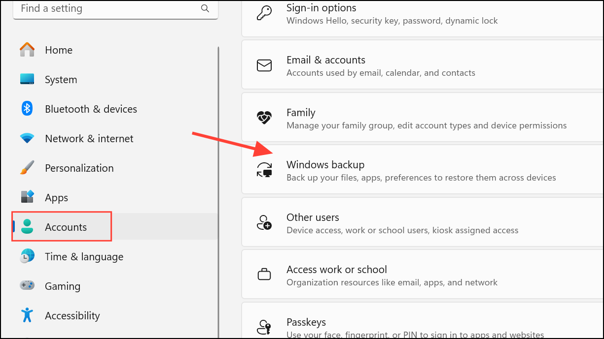 Step 4: Enable Windows Backup to sync your settings to OneDrive. Open Settings > Accounts > Windows backup and follow the prompts to back up your settings and files to OneDrive. This backup process links your device to the ESU program at no additional cost.