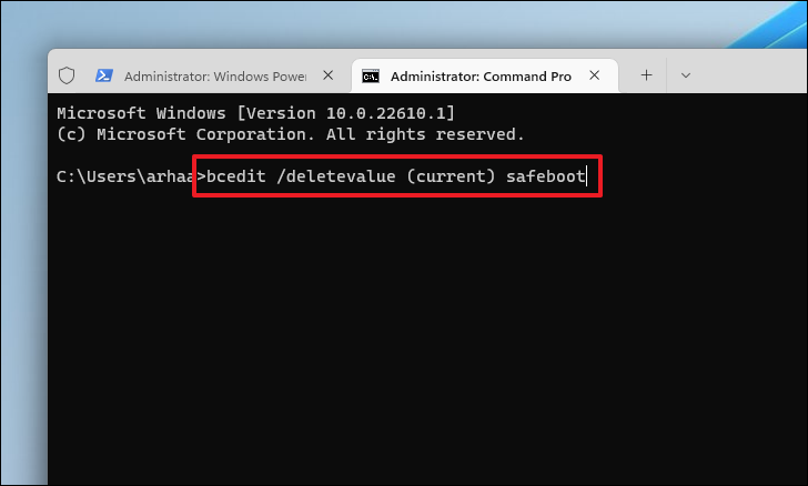If the System Configuration method doesn't work, you can use the Command Prompt to modify your boot settings and exit Safe Mode.