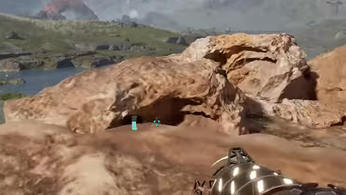 - Directly north of the Orbital Lander: Head out from the tutorial base and travel almost straight north. You’ll reach a band of pale plateaus with puddles that contain mineable Calcium Ore nodes.