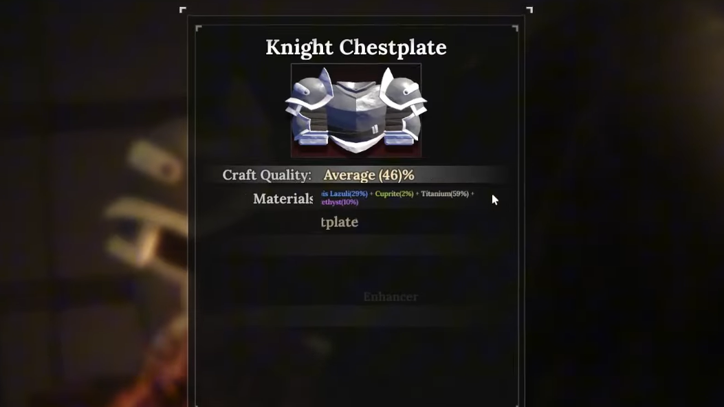 Step 2: At the Forge, build up crafts toward Heavy Armor pieces and Colossal Swords. Use at least the minimum ore required, and aim for the “optimal” counts in the table when you have the stockpile — this gives you much higher success chances.