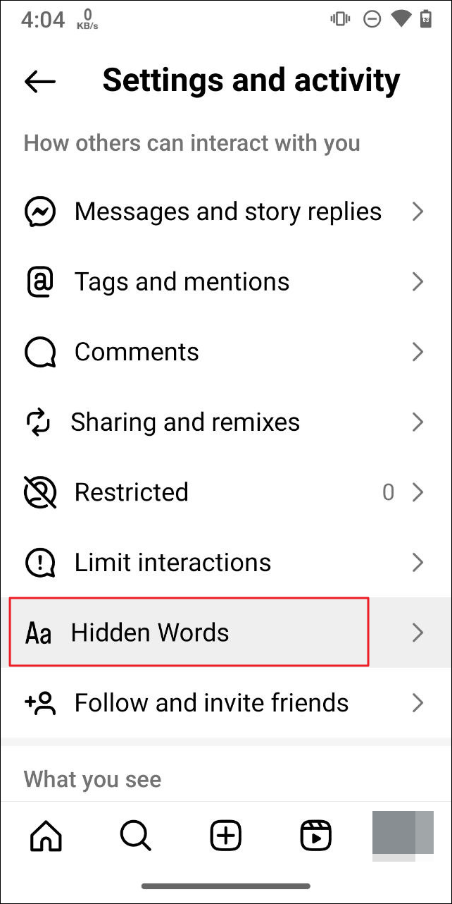 - Scroll down to the 'How others can interact with you' section and tap on the 'Hidden Words' option.