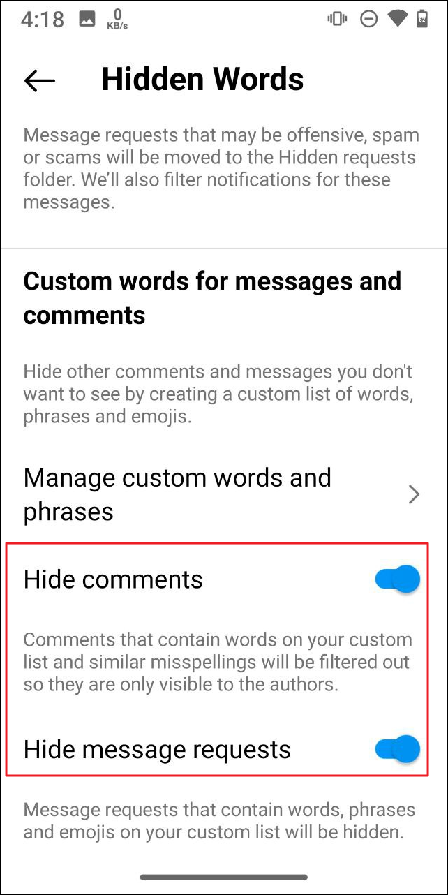 Instagram lets you hide words and phrases you do not want to see by filtering comments and messages on Instagram.