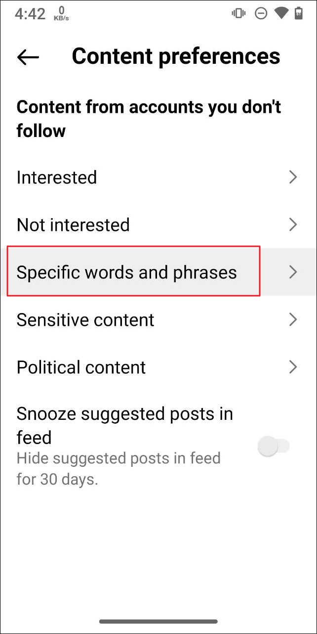 In addition to hiding offensive words and phrases directly on Instagram, you can hide reels and posts that contain such terms. Again you can do this from the Settings page.