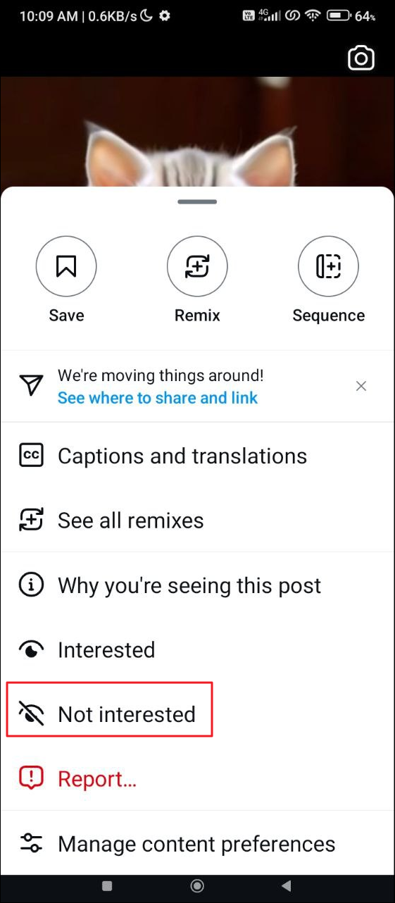 - Go through Instagram reels and posts until you come across something you find inappropriate or uninteresting.