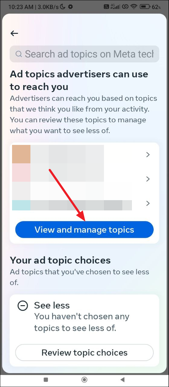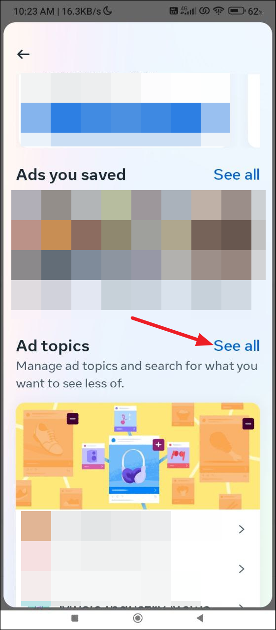 - Next, tap on the 'See All' option on the right of 'Ad Topics'.