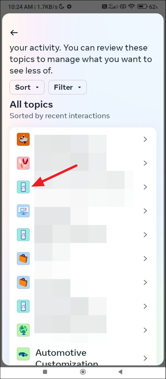- You will see the list of topics for which Instagram shows you ads. Tap on a topic you are not interested in.