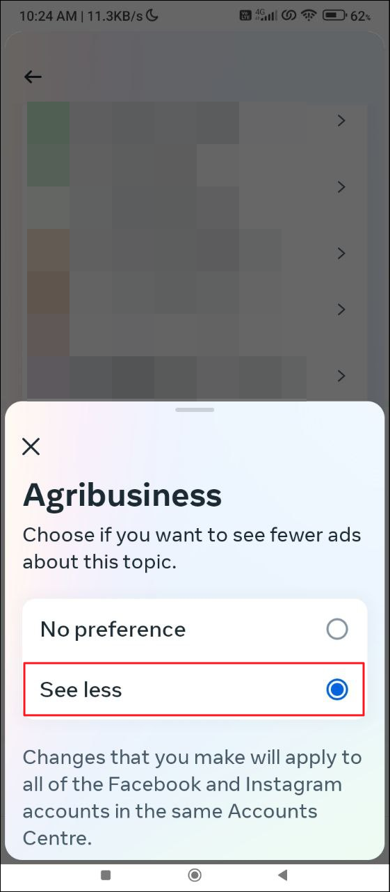- On the pop-up that appears, tap on the 'See Less' option. This will inform Instagram that you do not want to see ads on that particular topic.