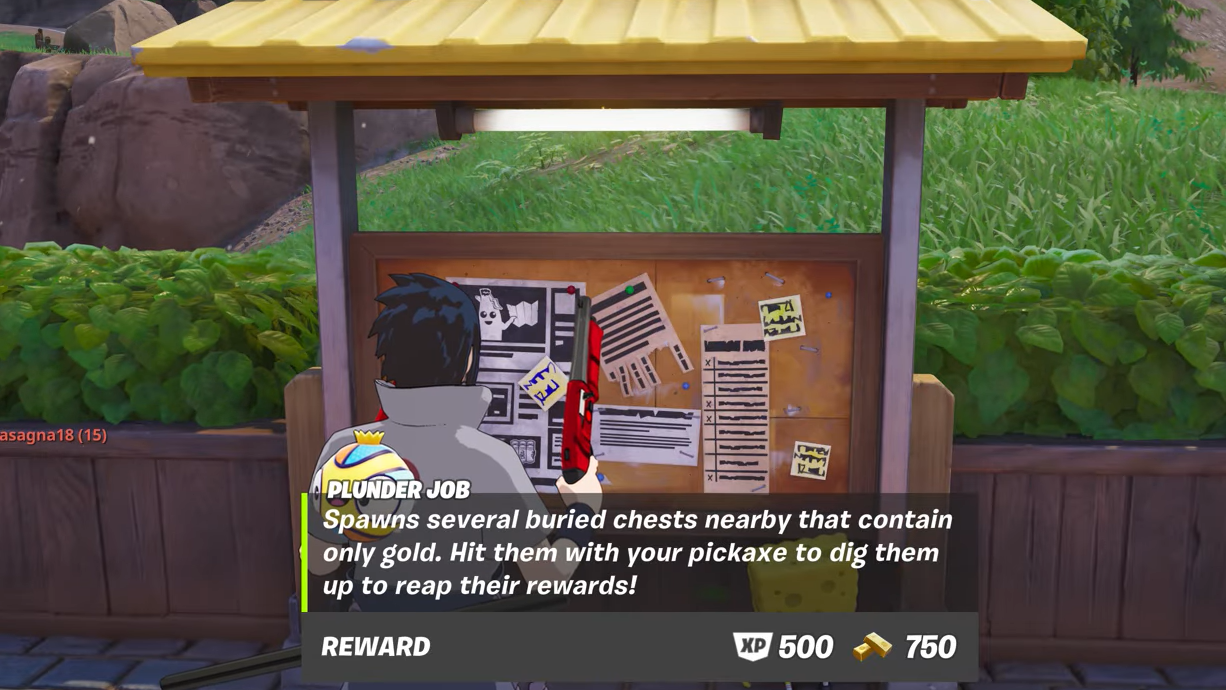 Step 1: Interact with a job board showing the Plunder label. The five-minute timer starts right away.