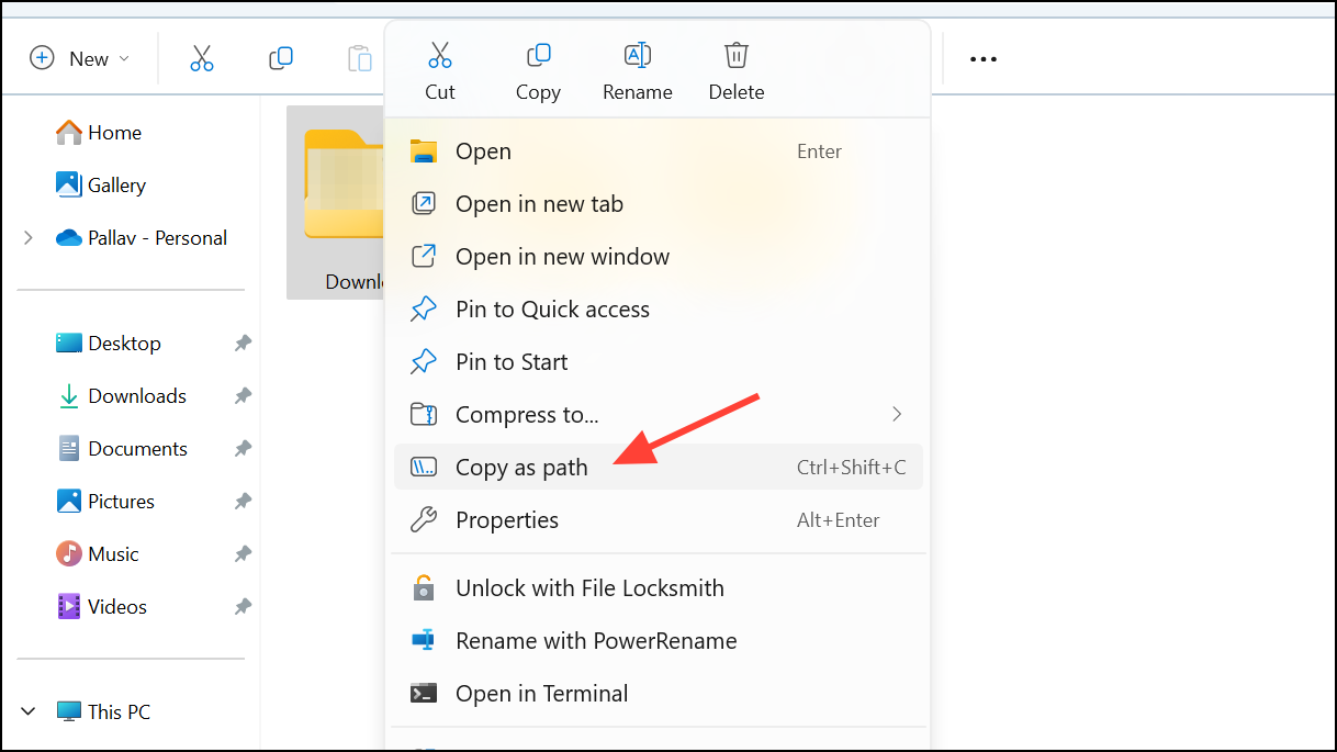 Step 1: Right-click the folder containing duplicates, select Copy as path to copy the directory path.