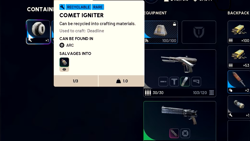 This is the critical detail most players miss. When a Comet detonates on its own — either by reaching you or by completing its charge-up sequence — the central core that contains the Comet Igniter is destroyed. You can still loot the outer metal ring after a self-destruct, but the ring only holds common parts like ARC Coolant and Advanced ARC Powercells. No core means no Igniter.