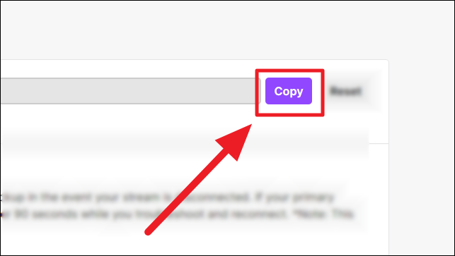 Copying the stream key: If you want to copy the stream key, click the ‘Copy’ button in purple next to the stream key box.