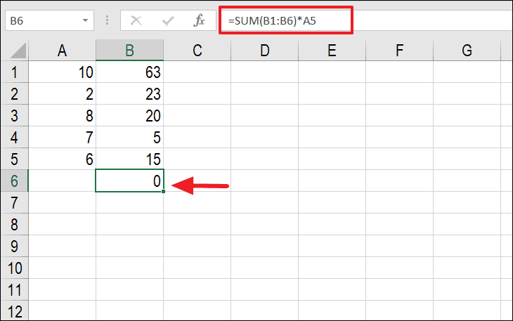 For example, if you have a formula in cell B6 as =SUM(B1:B6)*A5, and it's causing a circular reference, you can fix it by changing the formula to exclude B6: =SUM(B1:B5)*A5.