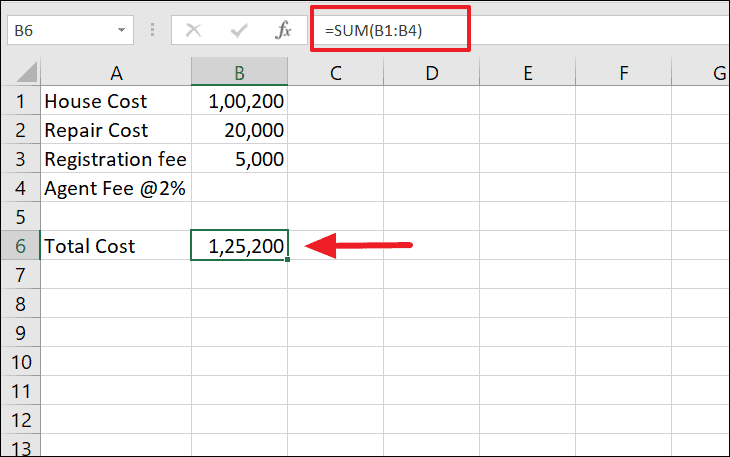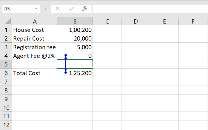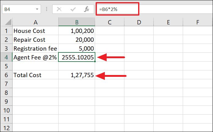 In cell B4, calculate the agent's fee as 2% of the total cost: