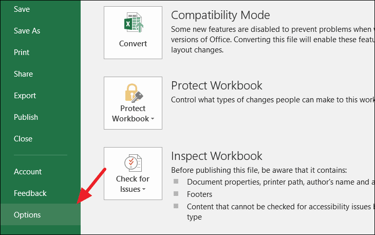 In Excel 2010 and later versions, navigate to the 'File' tab and select 'Options'.