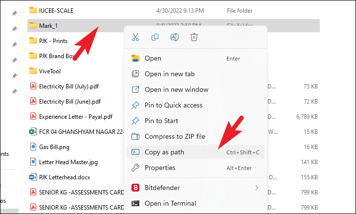 Step 1: Navigate to the folder containing the duplicate files using File Explorer. Right-click on the folder and select 'Copy as path' to copy the folder's path to the clipboard.
