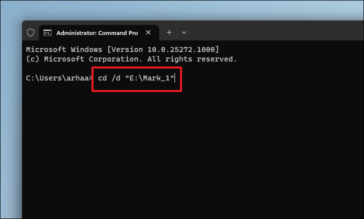 cd /d <copied folder path>Note: Replace <copied folder path> with the actual path you copied earlier, including the quotation marks.