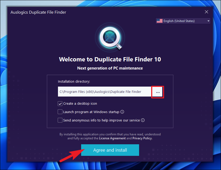 Step 4: In the installation window, click on the 'Agree & Install' button to begin the installation. If you wish to change the installation directory, click on the 'ellipsis' button beside the installation path and select a different folder using File Explorer.