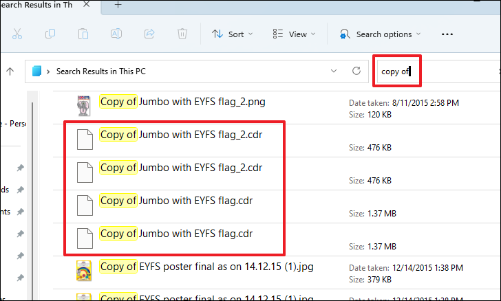 Step 2: To search your entire storage, type the name or part of the name of the file you suspect has duplicates into the search bar at the top-right corner of the window. File Explorer will display all matching results.