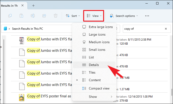Step 3: To view more details about the files, such as date modified or size, click on the 'View' tab and select 'Details'. This will help you compare files and identify duplicates.