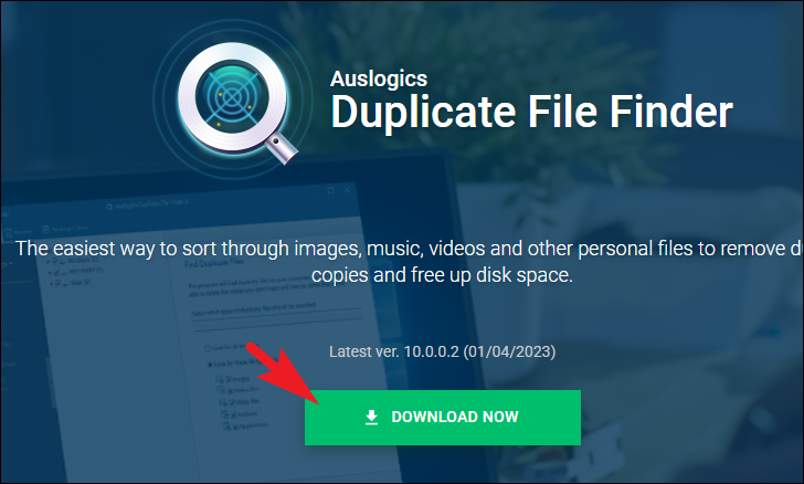 Step 1: To download Auslogics Duplicate File Finder, visit the official website at www.auslogics.com/duplicate-file-finder. Click on the 'Download Now' button to start the download.