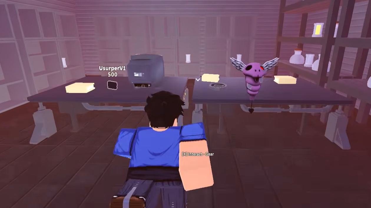 Step 4: Enter the shop. All five gears — Projector, Constructor, Manipulator, Executioner, and Ravager — are displayed on separate tables inside. Walk up to the one you want and interact with it to claim your gear.