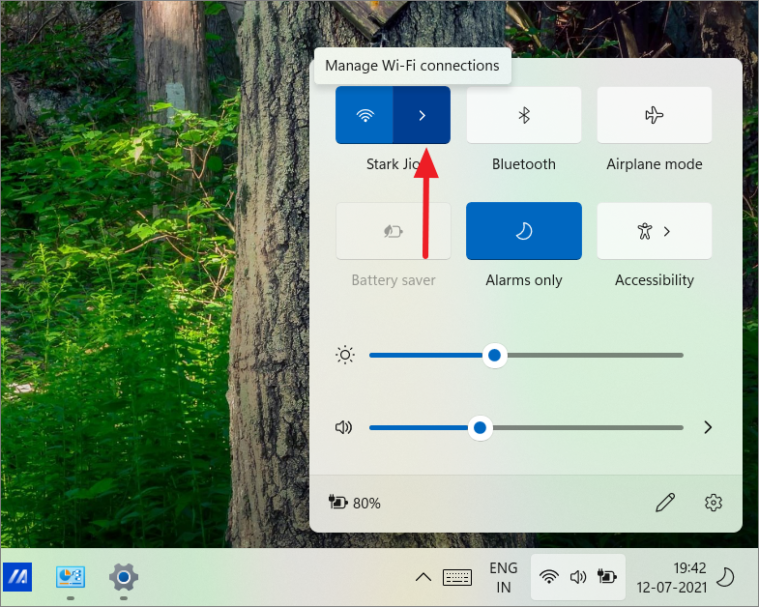 - In the quick settings menu that appears, click the arrow next to the Wi-Fi or Ethernet icon.