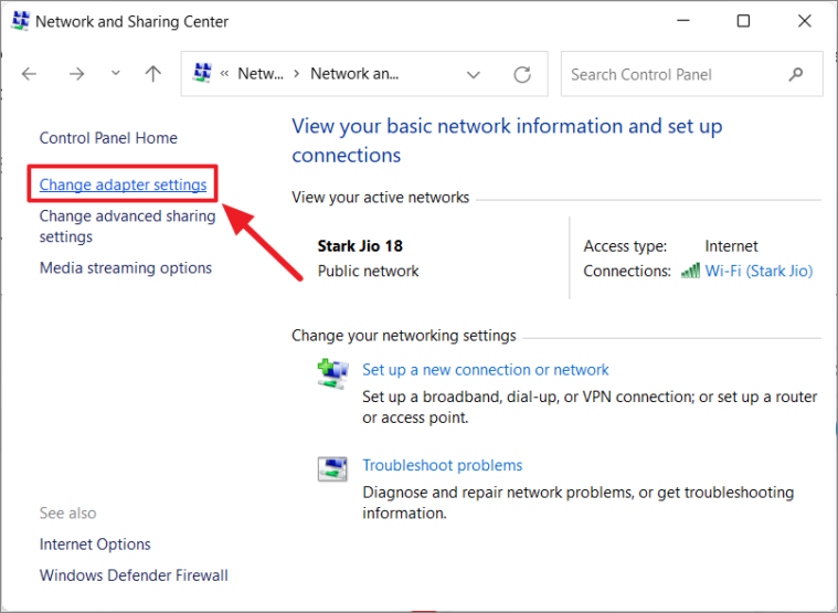 You can also click on Change adapter settings in the left sidebar to view all network adapters. Right-click your active connection, select Status, and then click Details to see your IP address.