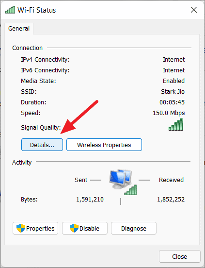 - In the status window that appears, click the Details button.