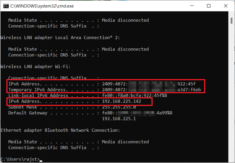 Your active network adapter's information will be displayed, showing your IPv4 and IPv6 addresses.