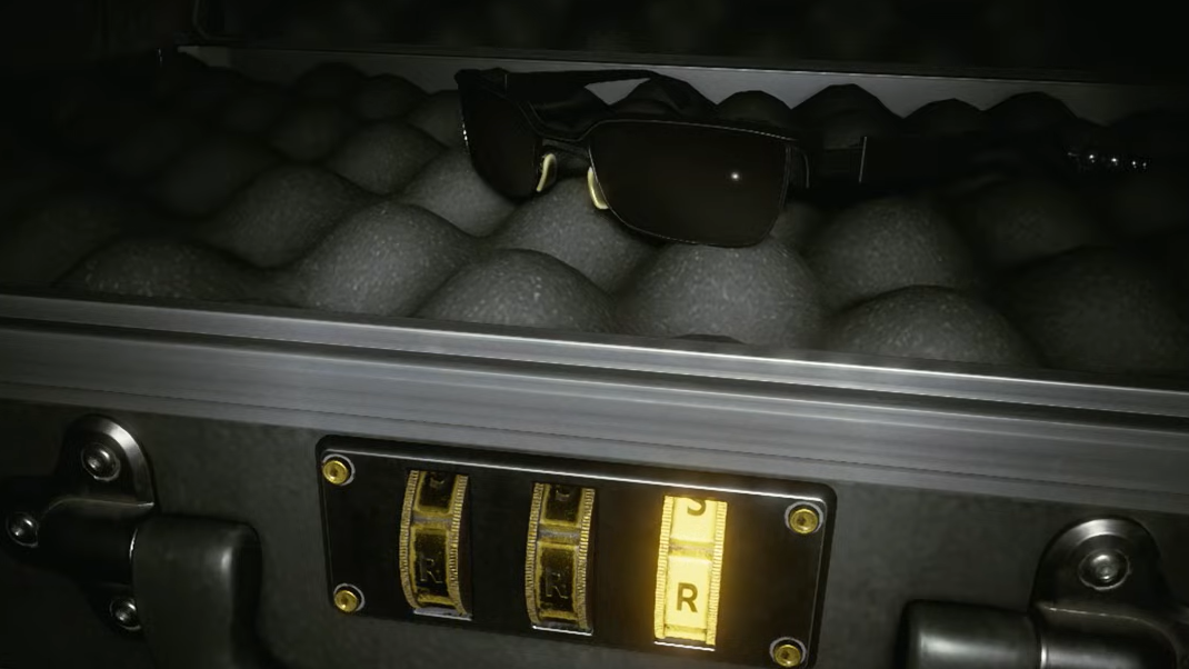 Step 4: Return to the S.T.A.R.S. Office and locate the briefcase in the equipment locker at the back-left corner. Enter the combination RRR — the first three letters of "Rising Rookie Rebecca."