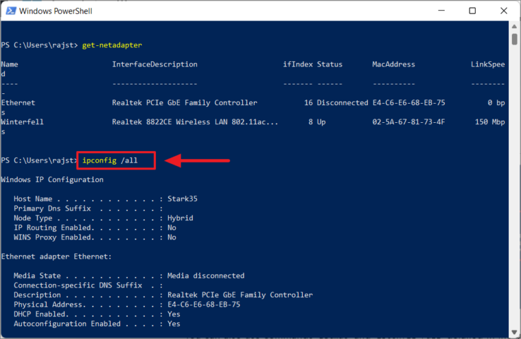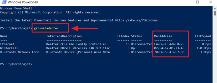 Windows PowerShell is another command-line tool that can help you find your MAC address.