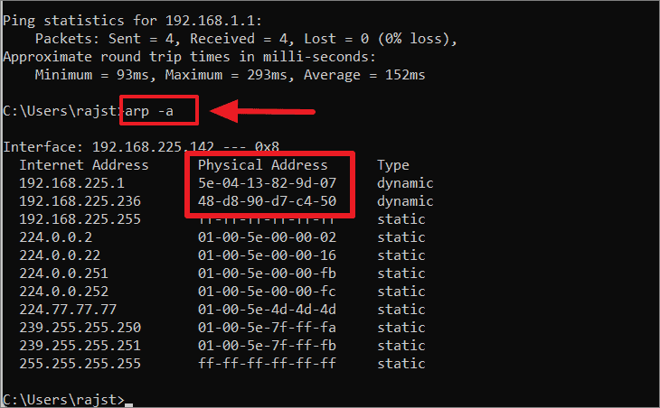 arp -aand pressEnter.