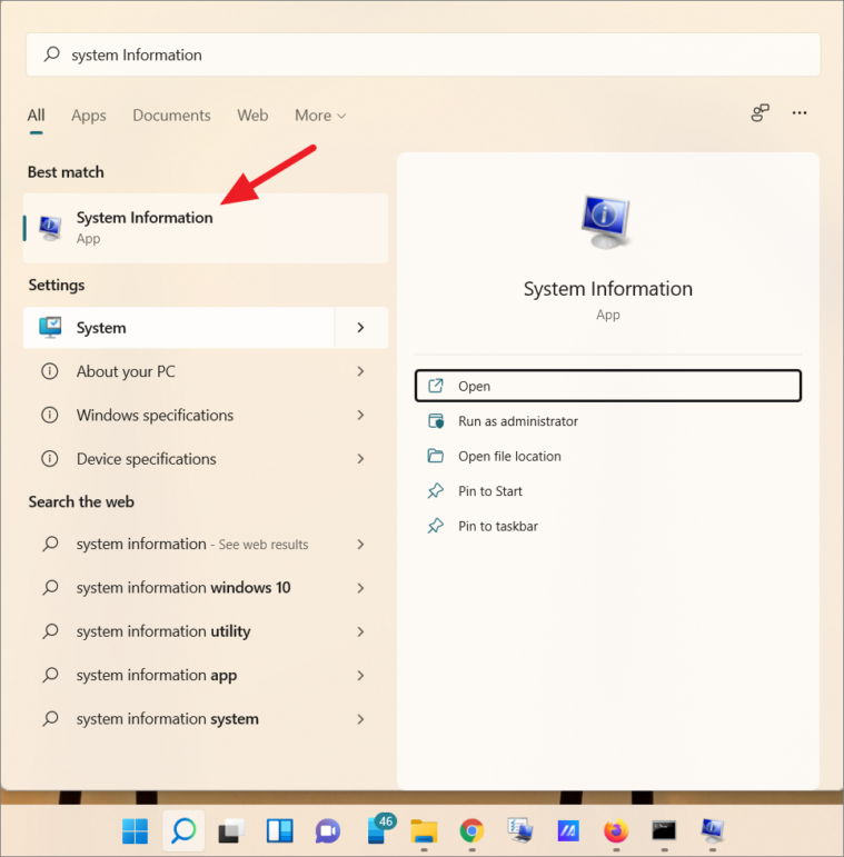 Win+Rto open the Run dialog box. Typemsinfo32and pressEnter.