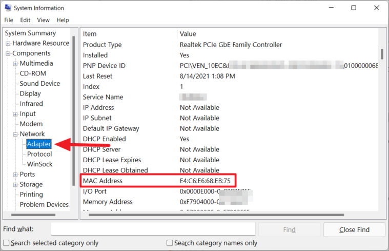 Find MAC Address Using System Information