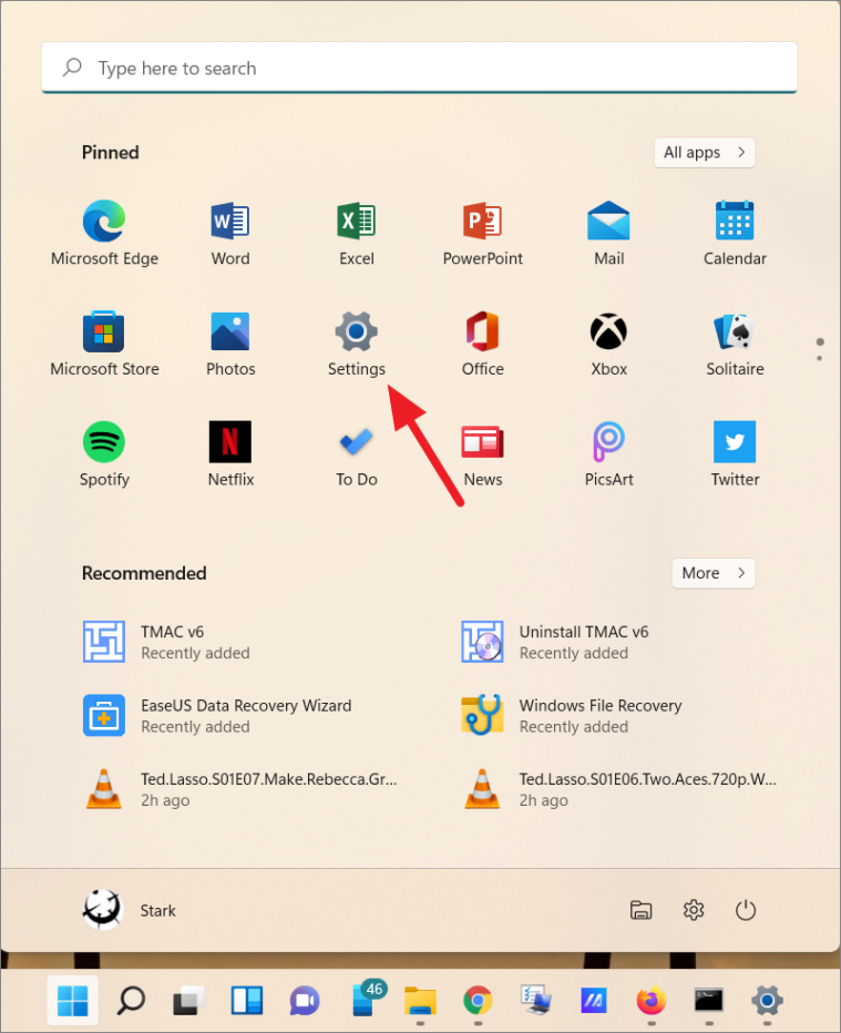 - Open the Start menu, type