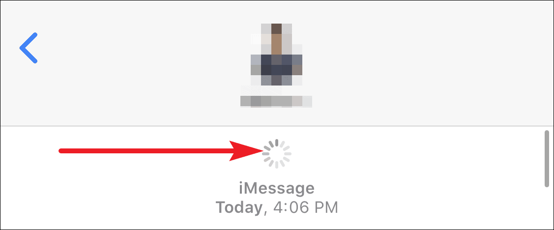 Step 3: The conversation will scroll up to the point where messages are currently loaded. You may notice a progress indicator as older messages load. Wait for it to disappear, then tap the top of the screen again to scroll further back in time. Repeat this process until you reach the messages you're interested in.