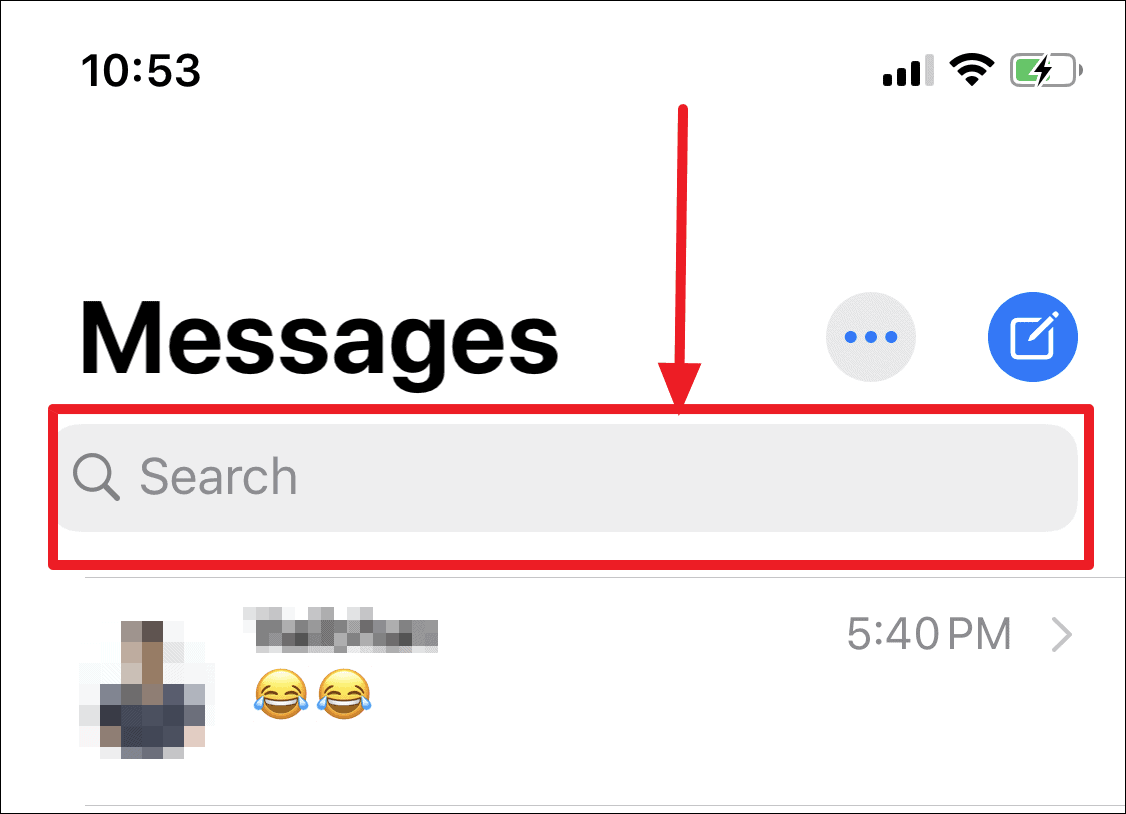 Step 1: Open the Messages app from your iPhone's home screen. On the main screen that displays all your conversation threads, you'll see a Search bar at the top. Tap on it to begin your search.