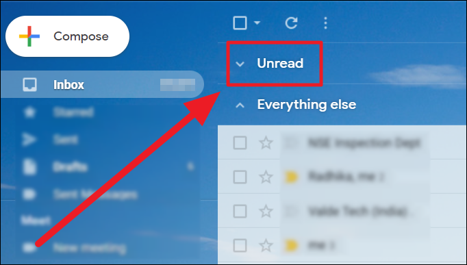 You can now view ‘Everything else’. To bring back your ‘Unread’ list, simply click the same label which is now on a drop-down box.