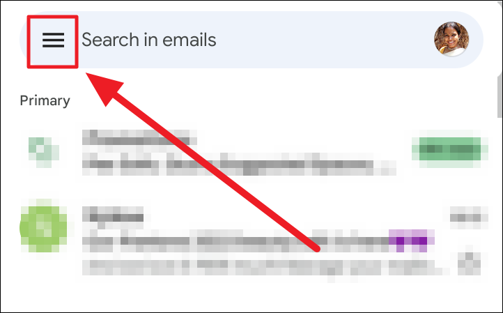 Tap the hamburger icon (three vertical lines) to the top right corner of your Gmail home screen.