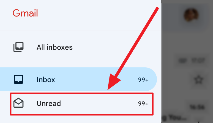 Below ‘All inboxes’, you can switch between your usual ‘Inbox’ and your ‘Unread’ inbox by selecting the respective option.