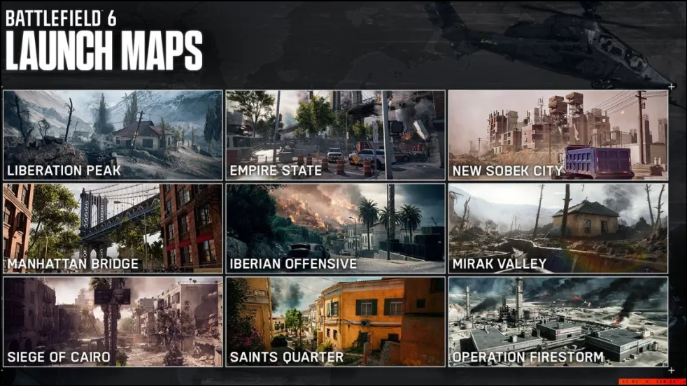 Each open beta weekend features a rotating selection of maps and game modes. The first weekend includes three maps—Siege of Cairo, Liberation Peak, and Iberian Offensive—with modes such as Conquest, Breakthrough, Domination, Closed Weapon Conquest, and King of the Hill. The second weekend adds the Empire State map and introduces additional modes like Rush and Squad Deathmatch.