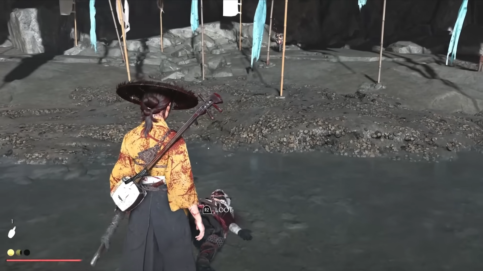 | 4 | North of #3, along the edge of the Rumoi River | Defeat the ronin looting a body, then loot the chime. | He’s more aggressive than regular soldiers; wait out heavy attacks. |