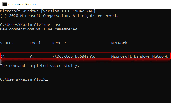 In Command Prompt, enter the following command to view the remote path of a network drive.