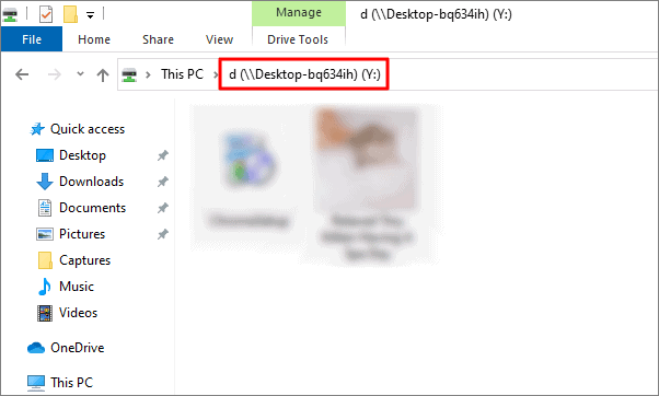 To check the path of a network drive using File Explorer, click on ‘This PC’ on the left panel in Explorer. Then double-click the mapped drive under ‘Network Locations’.