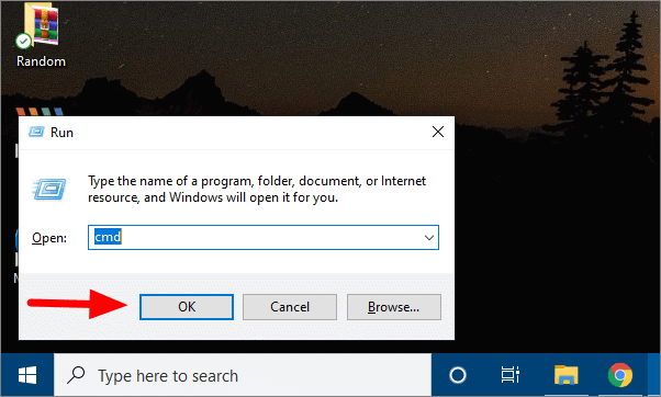 Search for Command Prompt in the search menu and then open it. You can also press WINDOWS + R, type ‘cmd’ in the text box, and press ENTER or click on ‘OK’ to access Command Prompt.