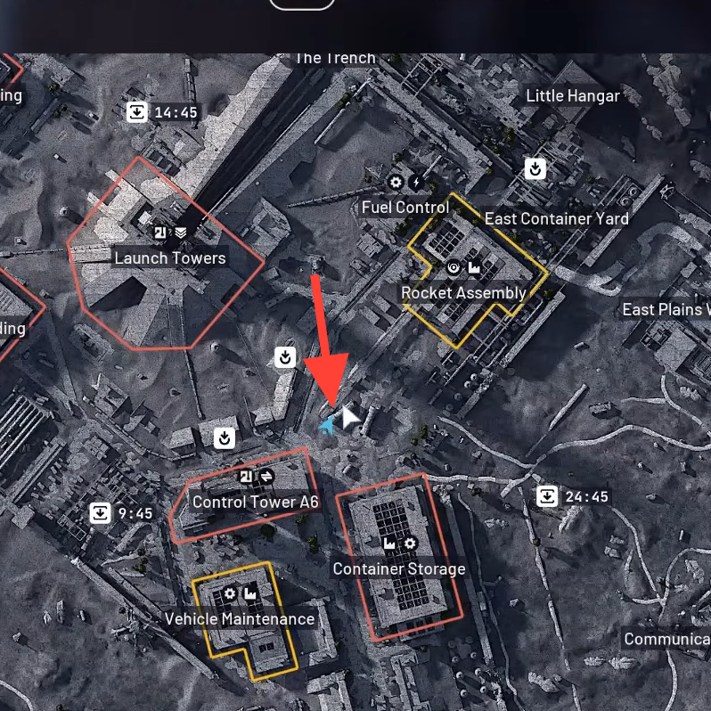 Step 1: Start a raid on Spaceport and move to Rocket Assembly. Drop down or path around until you reach the open ground directly beneath the assembly structure, near the broken rocket lying across the area.