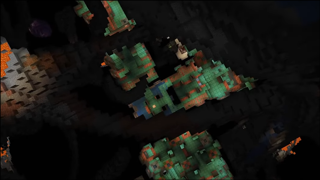 Step 3: When you choose a candidate area to check, drop a 2×1 test shaft from the surface to around Y -40. As you descend, watch for man‑made-looking blocks (tuff bricks and copper). If you hit ordinary caves only, move a moderate distance and repeat.