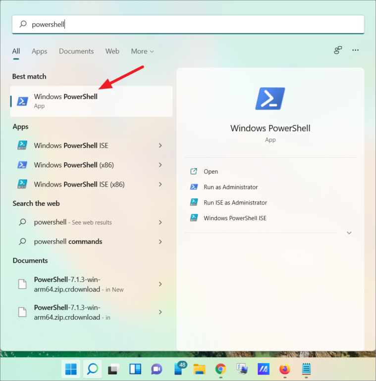 Step 1: Open PowerShell by searching for PowerShell in the Windows search bar and selecting the app.